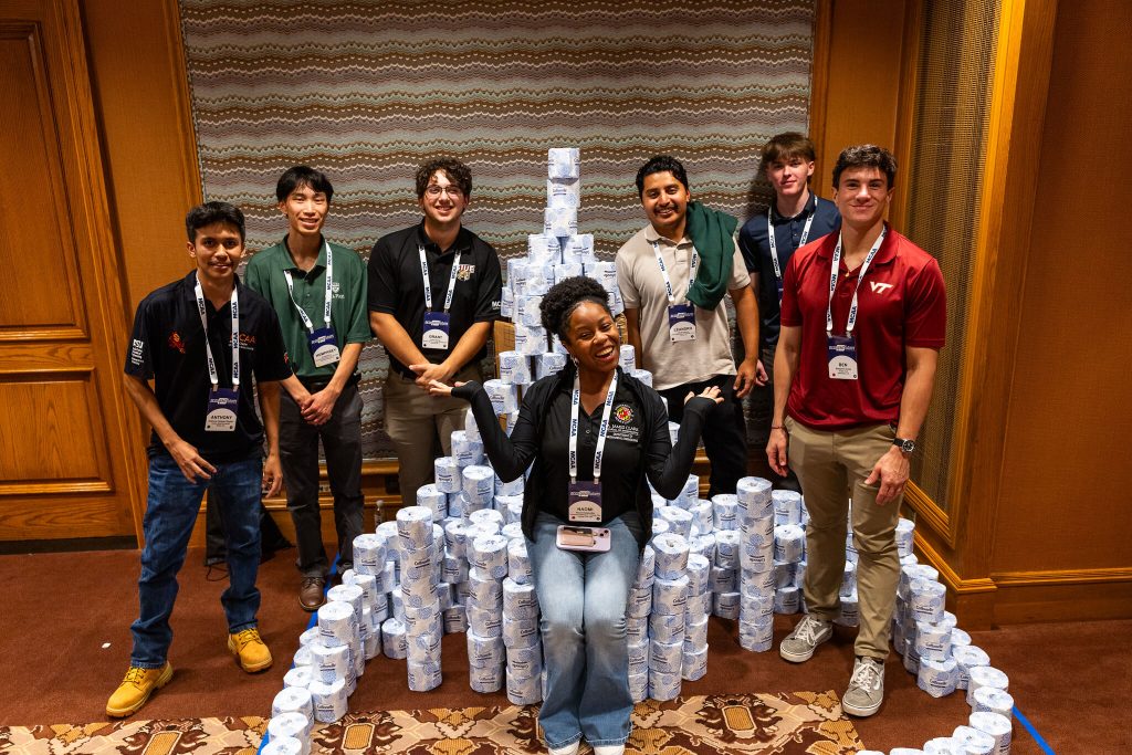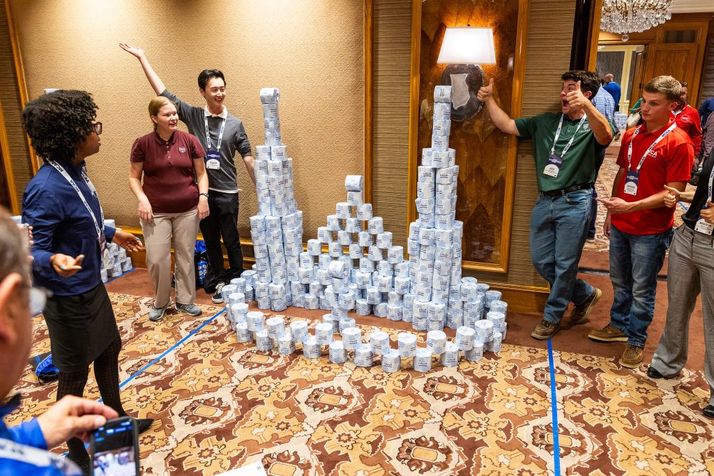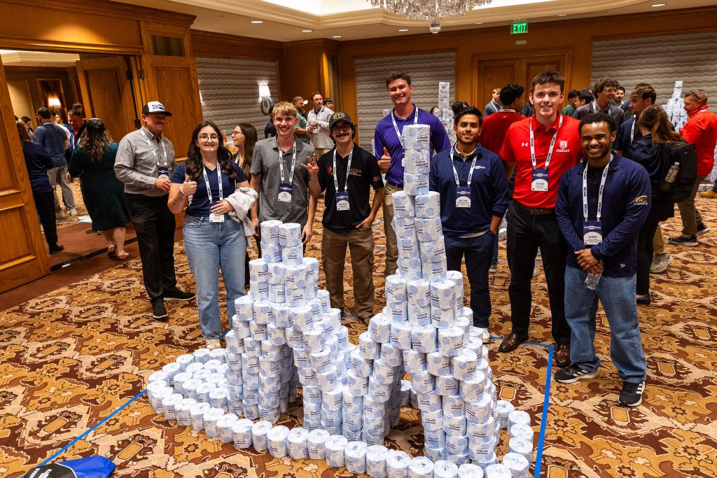 At the 2025 MCAA GreatFutures Forum (GFF) in Salt Lake City (October 9-11), over 200 students and industry supporters divided into 20 intermixed teams to create 3D sculptures out of $10,000 worth of toilet paper, donated by MILWAUKEE TOOL.