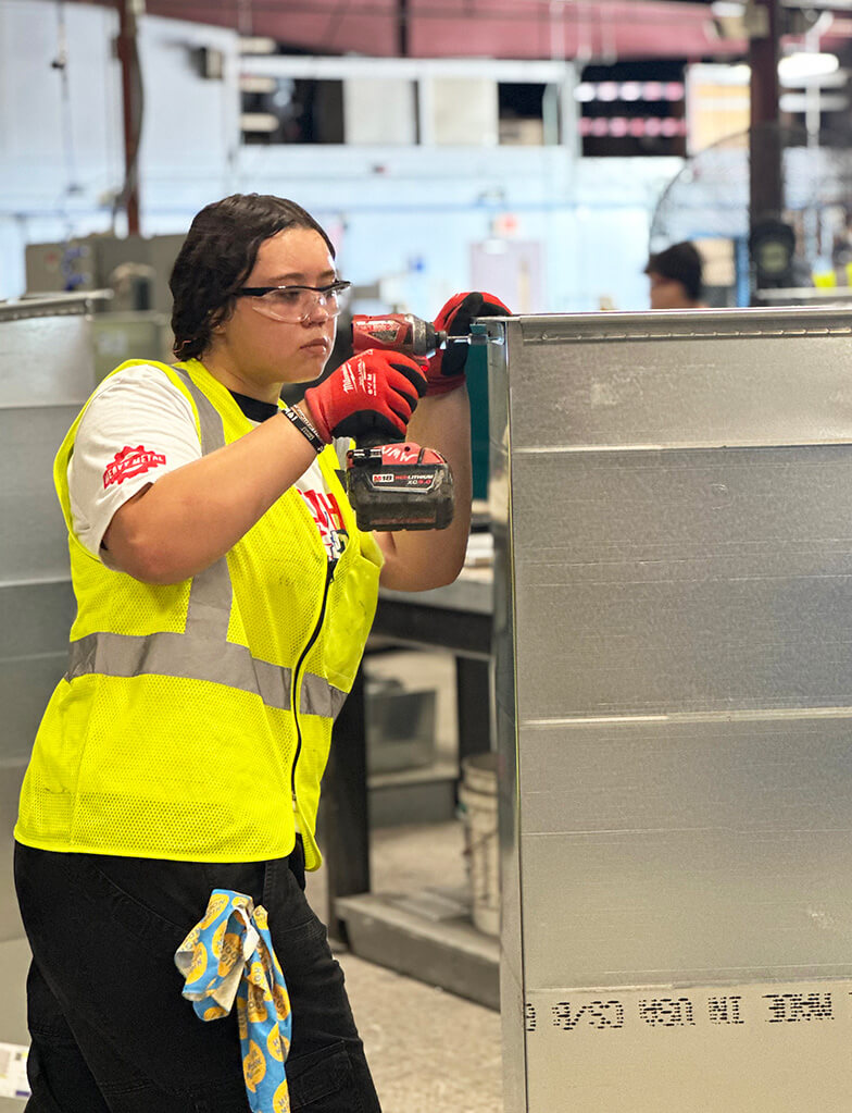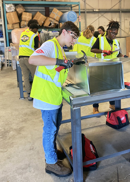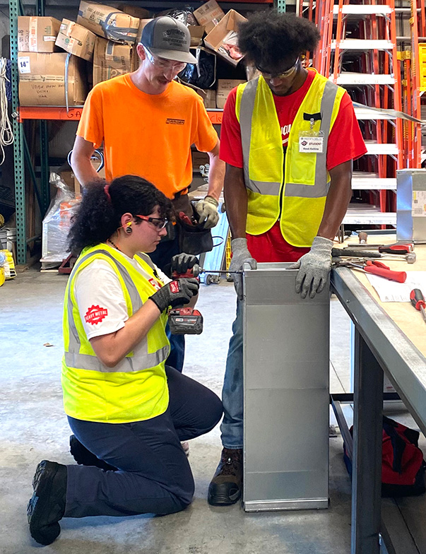 The camp was led by Norman Brothers, President, and Susan Avakyan, Controller, of UMW, and their entire office and trade staff. Students received hands-on experience in sheet metal fabrication and installation workflow, including safety procedures, estimating, 3D BIM process package workflow, duct construction, welding, and rigging while working alongside craft professionals.