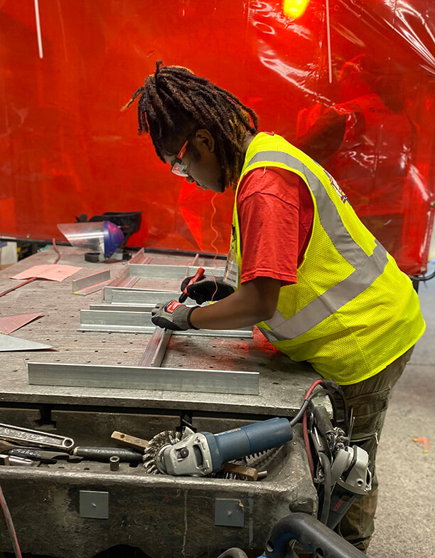 “I had so much fun, and this has made such a big impact on my welding career. All the mentors were amazing, from Susan and Norman always trying to make us feel special, to Sean teaching me that the saw was not so scary, and it wasn’t going to kill me, to Brandon teaching me not to give up on myself so quickly, and to Steve for telling me my hand on my hip was not going to get any work done.