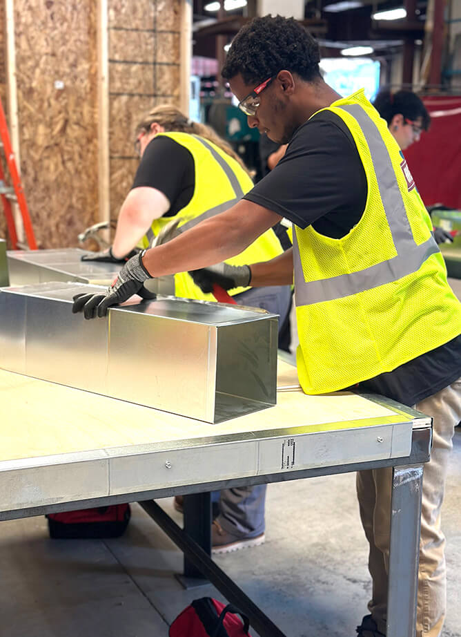 Norman first heard about HMSE in November 2022 from his YouTube feed, which focused on sheet metal work. After watching videos of students gaining hands-on experience and learning that HMSE was created to provide alternative college options and address the construction industry’s skilled labor shortage, he decided to conduct further research.