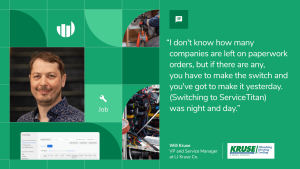 Until two years ago, L.J. Kruse Company, a fourth-generation plumbing and HVAC shop in Berkeley, CA, was still using paper for invoicing. With ServiceTitan, the company’s service side boosted revenue by $1 million. “I don’t know how many companies are left on paperwork orders, but if there are any, you have to make the switch, and you’ve got to make it yesterday,” said Will Kruse, vice president and service manager at L.J. Kruse Co. Switching to ServiceTitan “was night and day.”