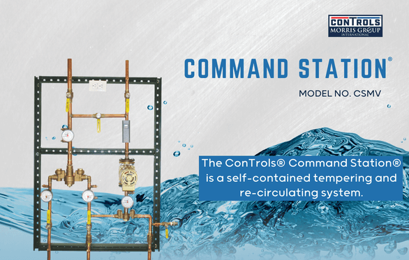 The Command Station system from ConTrols Mfg., a Morris Group International® brand, is a self-contained tempering and re-circulating system. It is welded to a mounting frame for easy installation.
