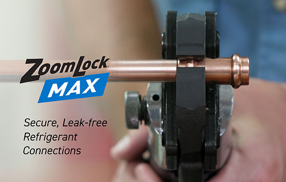 Parker’s ZoomLock® MAX press-to-connect refrigerant fittings is a safe, flame-free alternative for connecting copper HVACR piping in seconds. ZoomLock MAX fittings come in hermetically sealed packaging; the hard, robust, debris-free copper fittings, ready for installation, assure a clean install. ZoomLock MAX fittings also work with the tool you already use. Jaws are available for most professional crimping tool brands. Make the move ZoomLock MAX fittings on your next project, and watch your profits go up.
