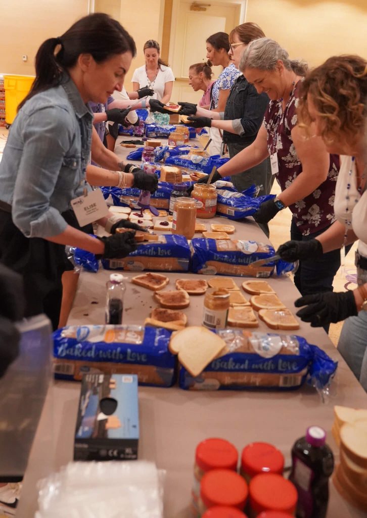 Under the guidance of First Lady Elise Beck, partners assembled a significant number of resources for the charity. Within a couple of hours, they prepared 1,100 peanut butter and jelly sandwiches, along with 500 snack bags and 500 personal care bags. These items were promptly distributed to those facing daily hardships.