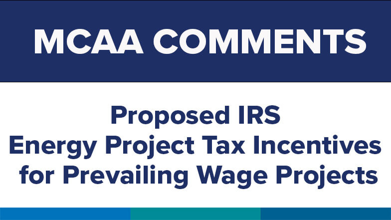 MCAA recently submitted comments on the proposed Internal Revenue Service (IRS) regulations implementing the Biden Administration’s energy project enhanced tax incentives for projects paying prevailing wages and using a minimum of 10 to 15 percent registered apprentice hours (PWA).