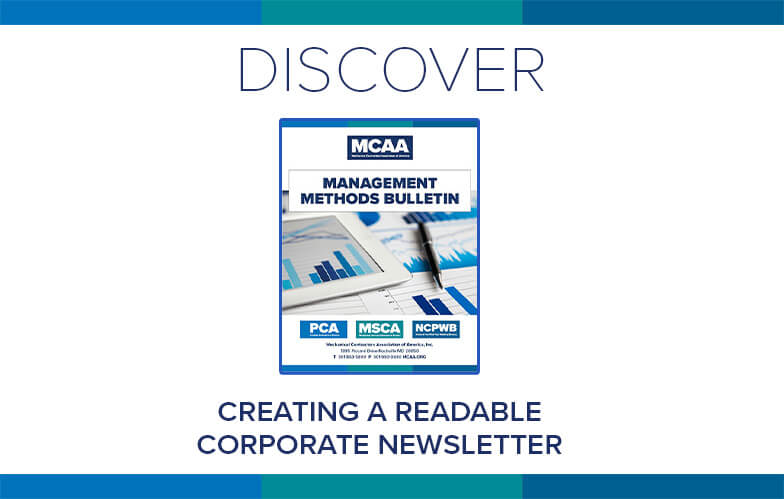 Staying in touch with customers, employees and others who may be interested in your company’s products and/or services, upcoming events, or other business developments is critical to your company’s growth and success. Thanks to the availability of myriad print and electronic media, the Internet and social media, companies have many options for connecting with their internal and external audiences. This bulletin focuses on one option—newsletters. It’s just one of MCAA’s educational resources that are free to MCAA members as a benefit of membership.