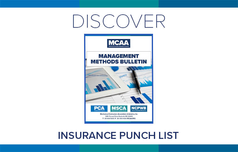 Insurance is a costly but integral part of a contractor’s business. MCAA’s Insurance Punch List helps contractors understand how and why premium dollars are spent and when insurance is needed. It’s just one of MCAA’s educational resources that are free to MCAA members as a benefit of membership.