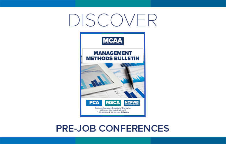 Planning is essential to the successful completion of any job. MCAA’s Pre-Job Conferences outlines the importance of the pre-job conference as a planning tool and includes a sample agenda for use at these meetings. It’s just one of MCAA’s educational resources that are free to MCAA members as a benefit of membership.