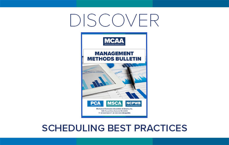 Modern construction projects require expertise in multiple forms of scheduling to account for proper work sequencing, resource allocation, and production planning. MCAA’s Scheduling Best Practices offers tips for adapting and improving skill and competency at scheduling. It’s just one of MCAA’s educational resources that are free to MCAA members as a benefit of membership.