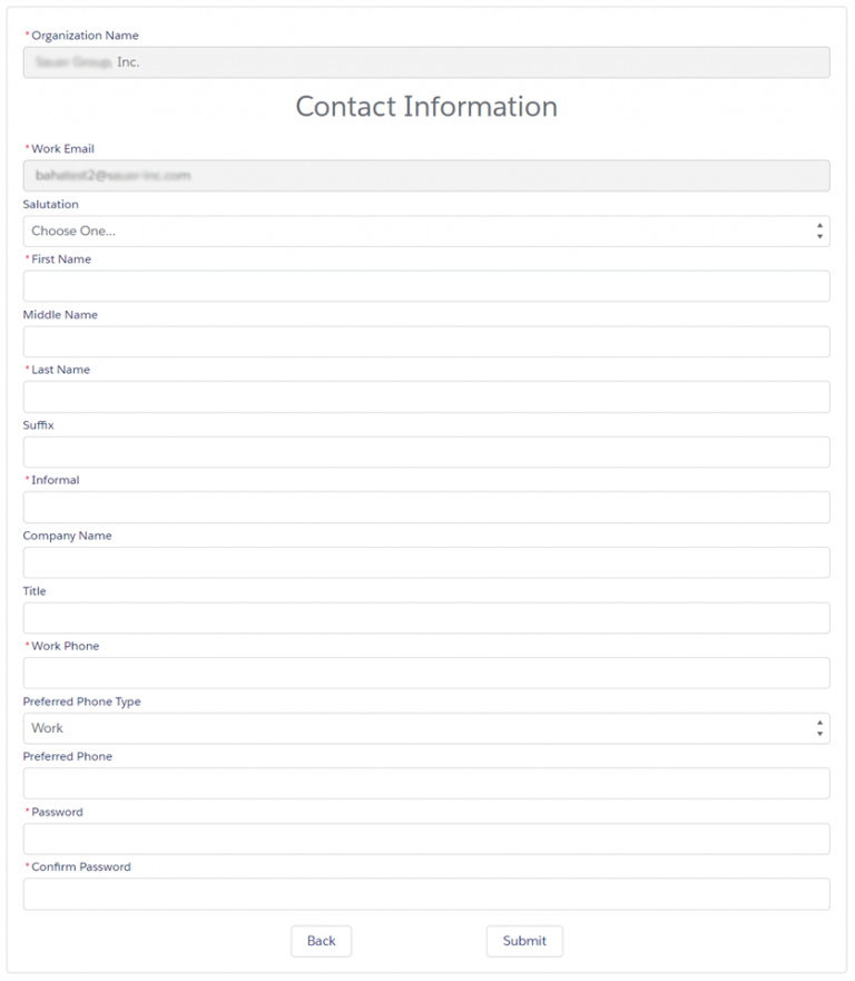 If your email domain (example: acme.com) matches the domain on your company record, the system will select your company and you can proceed. If your company has multiple locations, you will be required to select your location from a dropdown.