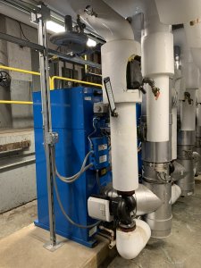 When blown down, the first strainer released a large cloud of black sediment followed by relatively clear water. For the second strainer, the system was shut down and the cover plate was removed completely to get a sense of what was being attracted to the magnet.