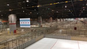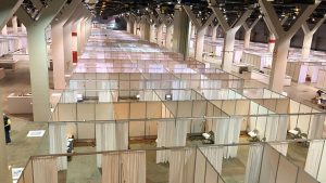 While most of the Army Corps facilities were designed to handle non-COVID-19 patients, Chicago’s McCormick Place convention center was planned to care for up to 3,000 people with mild or moderate coronavirus infection, freeing up hospital beds for more severe cases. Patients would be separated in the convention center halls by the level of care they required, spread throughout the facility’s 2.6 million square feet of exhibit space. Construction for the first 500 beds was completed April 3. (As the pandemic spread, the project was scaled back to 1,000 beds, because the state lockdown “flattened the curve”—or slowed the pace of infection—and area hospitals were able to keep up with the cases.)