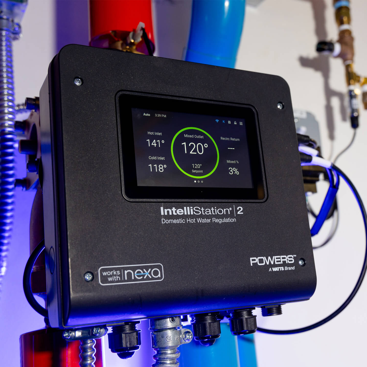 - Digital precision drives reliability: The IntelliStation 2 held accurate temperatures even during peak demand, eliminating the inconsistent performance that often comes with mechanical valves. Facility staff benefit from steady, predictable operation without constant adjustment.