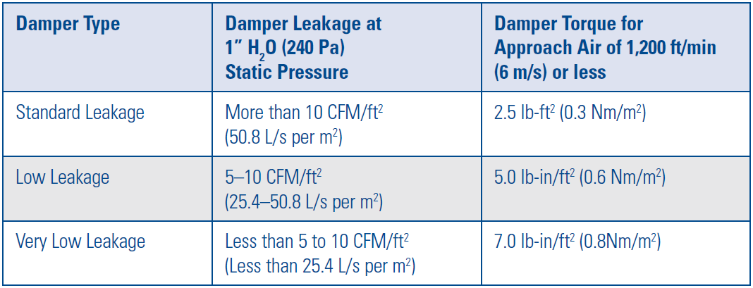 - From the damper or equipment manufacturer, calculate the damper torque rating (DTR) for the damper at the most severe operating conditions. If it is not available, use the table below to estimate the leakage type, static pressure, and air velocity.