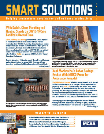 Xcel Mechanical Systems estimated saving as much as 40 percent in labor on some aspects of an aerospace laboratory renovation project by using NIBCO® Press fittings and valves. Xcel, based in Gardena, CA, was hired to design and build the mechanical, plumbing, and process piping elements to expand and modernize an occupied research and development facility in southern California for one of the nation’s largest aerospace firms. NIBCO INC. is a sponsor of MCAA’s 2021 Virtual Education Conference.